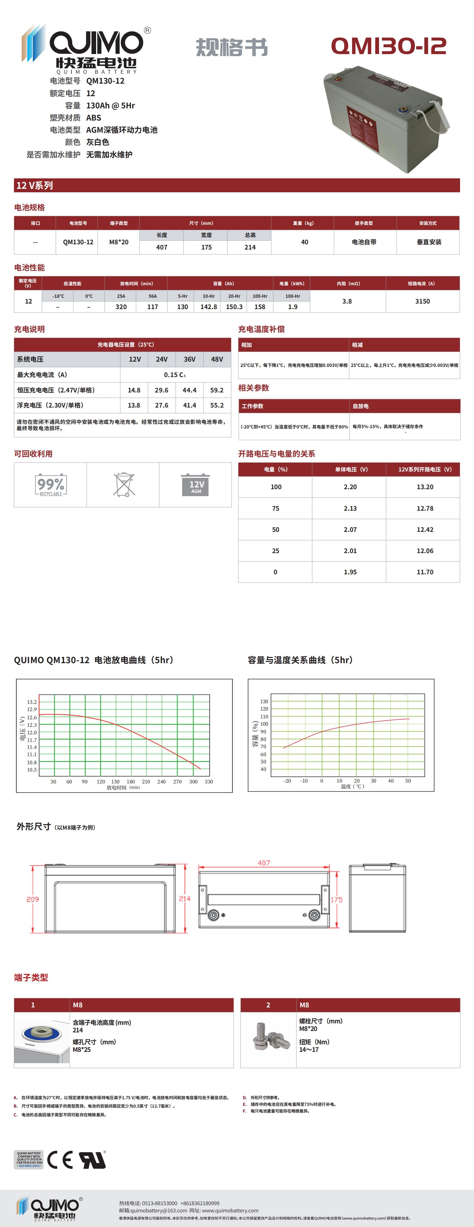 QUIMO登高車用閥控式鉛酸蓄電池QM-130
