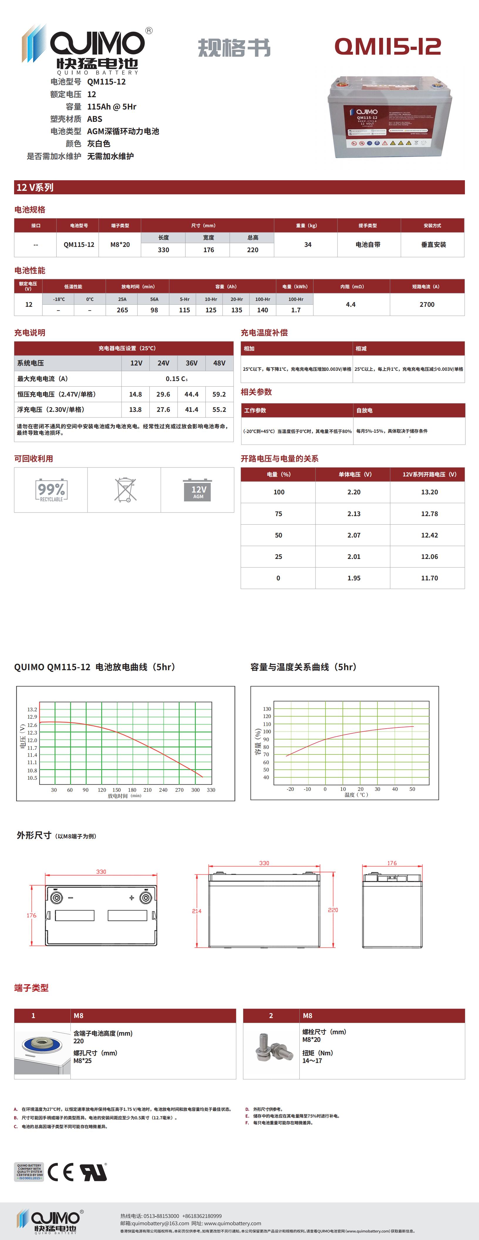 QUIMO登高車用閥控式鉛酸蓄電池QM-115